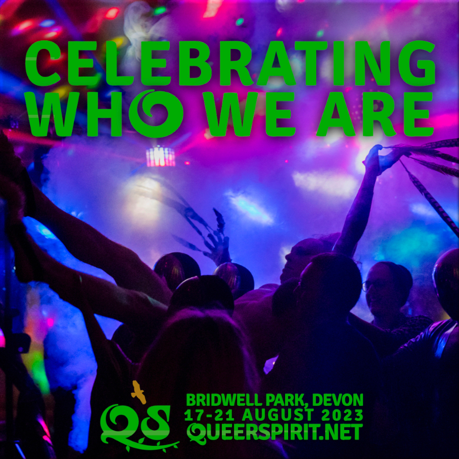 Shokti here, back from the Divine Delights of Queer Spirit Festival, where 600 magical Lesbians, Gay Men, Bisexual, Transgender and Non-binary folk along with friends and allies, over 5 days in the stunning, genuinely bucolic, setting of Bridwell Park in Devon, celebrated creative connection with nature, the thrill of bonding in community and the spiritual liberation that queerness can open up in us.