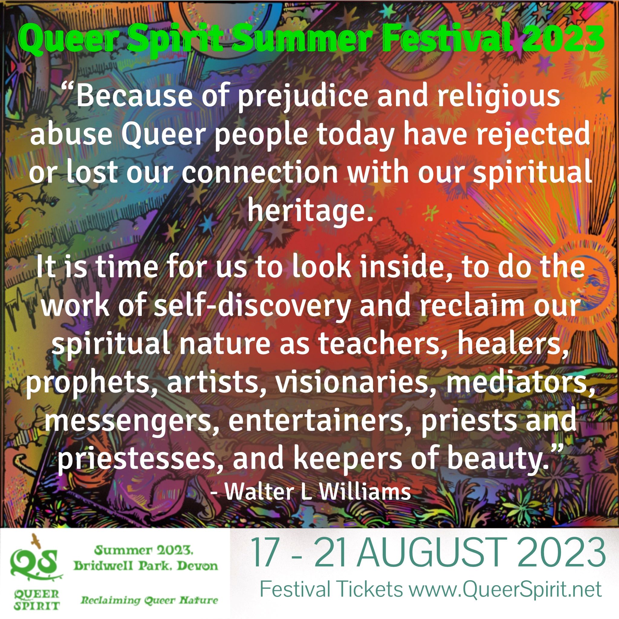 Queer Spirit Festival is part of a global awakening to the spiritual history, nature and calling of Lesbian-Gay-Bi-Trans-Queer People...